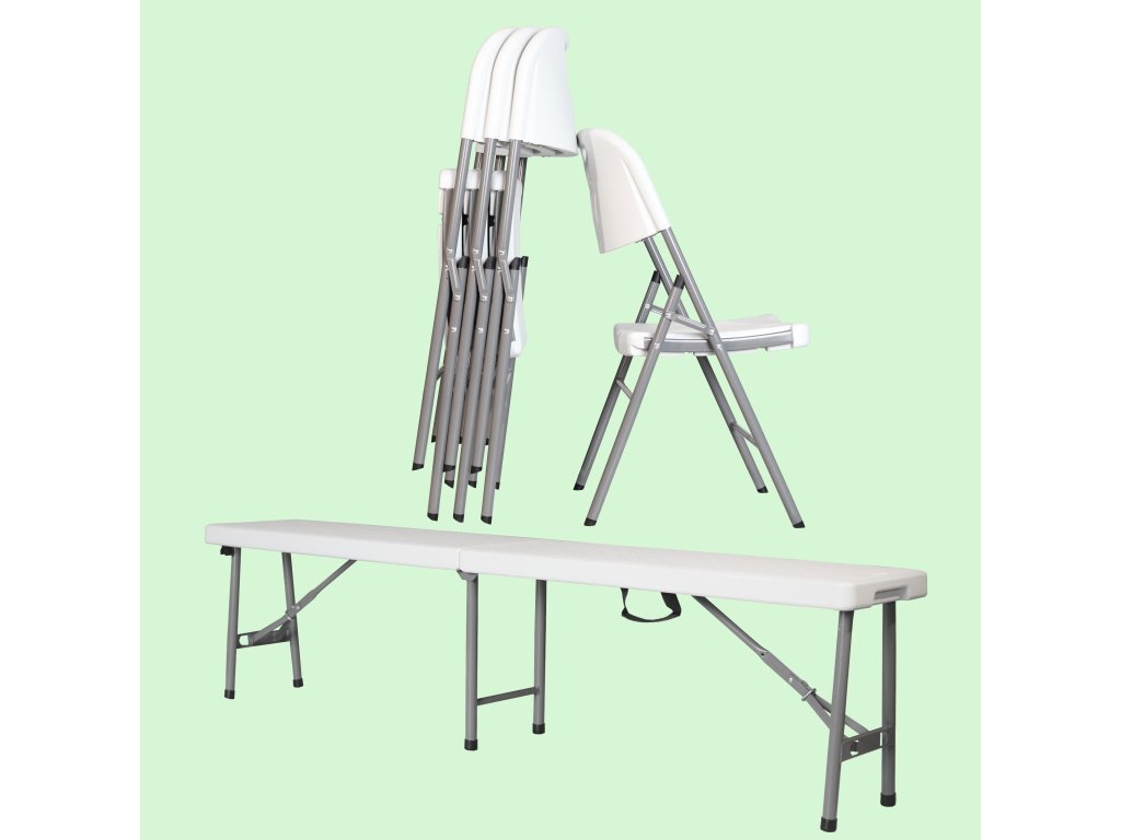 Te plastikowe krzesła i ławki są wykonane z wysokiej jakości plastiku, który jest odporny na uszkodzenia i zużycie. Ten lekki materiał umożliwia również łatwe przenoszenie mebli.
